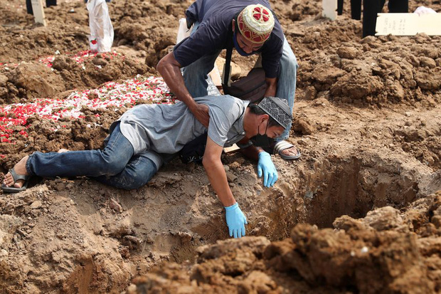 Không chỉ gây áp lực cho đội ngũ nhân viên y tế khi phải lựa chọn cứu sống cho các bệnh nhân có tiên lượng tốt hơn, đại dịch cũng đã tấn công, lấy đi sinh mạng của hơn 1.100 y bác sĩ nước này. Nhân viên các nhà tang lễ đã kiệt sức vì phải làm việc gần 24 giờ. Tại nghĩa trang Rorotan phía Bắc thủ đô Jakarta, hàng chục xe cứu thương cả của bệnh viện và tư nhân chở thi thể nạn nhân Covid-19 đang xếp hàng chờ đến lượt an táng.