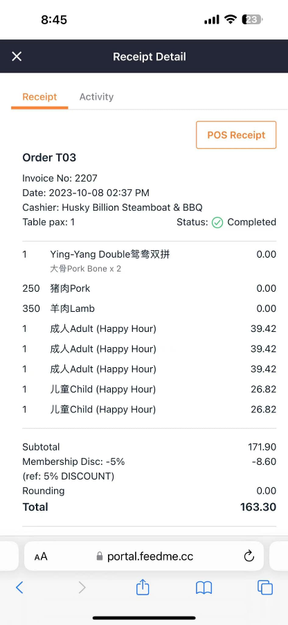 Theo đó, gia đình trên có 2 trẻ em nhưng lợi dụng hình thức gọi món buffet thoải mái, đã yêu cầu nhân viên phục vụ 250 đĩa thịt lợn, 350 đĩa thịt cừu sau đó lén đóng gói đem về. Nhân viên ban đầu khá do dự nhưng họ vẫn mang lên 5 đĩa/lượt cho gia đình này. Trong khi đó, hóa đơn của họ vẫn chỉ là 163 Ringgit Malaysia (hơn 800.000 đồng) theo mức giá đã khuyến mãi tại nhà hàng.