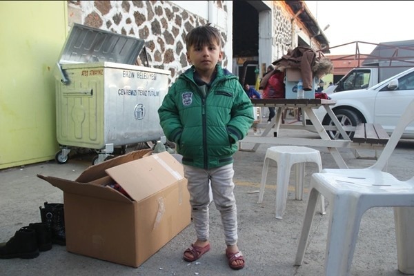 Vahit Yalcin, con trai 5 tuổi của cô Beyaz Yalcin, đang thiếu quần áo ấm khi chưa thể trở về nhà ở Gaziantep. Ảnh: Kristina Jovanovski.
