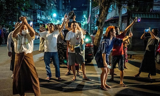 Đó là đêm thứ tư liên tiếp người dân thành phố Yangon sử dụng phương thức này để tỏ phản đối chính quyền binh trị đang điều hành đất nước. Quân đội Myanmar sáng 1/2 đột kích bắt giữ Cố vấn Nhà nước Aung San Suu Kyi và các lãnh đạo đảng Liên minh Quốc gia vì Dân chủ Myanmar (NLD), đảng chiến thắng trong cuộc bầu cử tháng 11 năm ngoái.