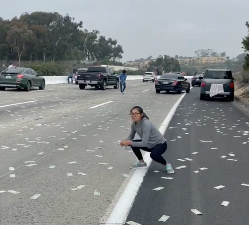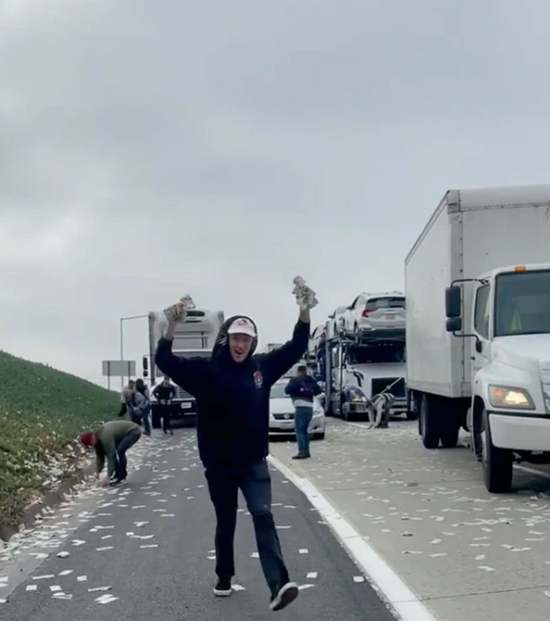 Hãng tin CNN dẫn lời người phát ngôn của Đội tuần tra cao tốc California (CHP) xác nhận "tiền rơi đầy trên đường cao tốc. Mọi người dừng lại, tràn ra các làn đường và bắt đầu nhặt tiền".