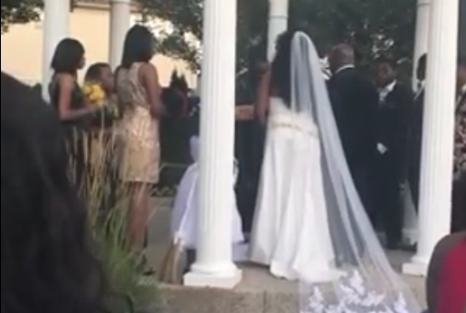 Theo tiết lộ, sự việc diễn ra tại bang Michigan ở Mỹ. Vào thời điểm cô dâu chú rể đang đứng trên lễ đường chuẩn bị nói lời thề non hẹn biển, một cô gái bất ngờ xuất hiện. Người này được cho là bạn gái cũ của chú rể, đứng dậy hét lớn.