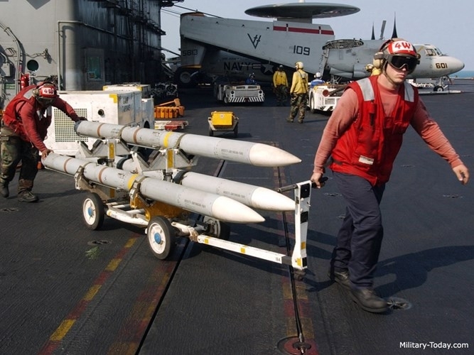 Với sự kết hợp các tính năng sao chép lẫn mua bản quyền từ nước ngoài thì tên lửa dành cho không chiến ngoài tầm nhìn (BVR) PL-12/SD-10 này được đánh giá khá cao so với các tên lửa cùng loại Trung Quốc nhập khẩu. Tuy nhiên, khi phải đối đầu với dàn tên lửa Mỹ trên Biển Đông, cơ hội chiến thắng cho tiêm kích Trung Quốc sẽ rất hiếm, DSCA nhận định. (Ảnh trong bài: Tên lửa AIM-120 AMRAAM). |