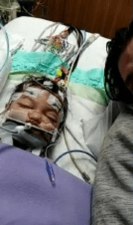 Cô đăng hình ảnh Meka nằm bất động với chằng chịt những sợi dây y tế và ống thở kèm theo nội dung: