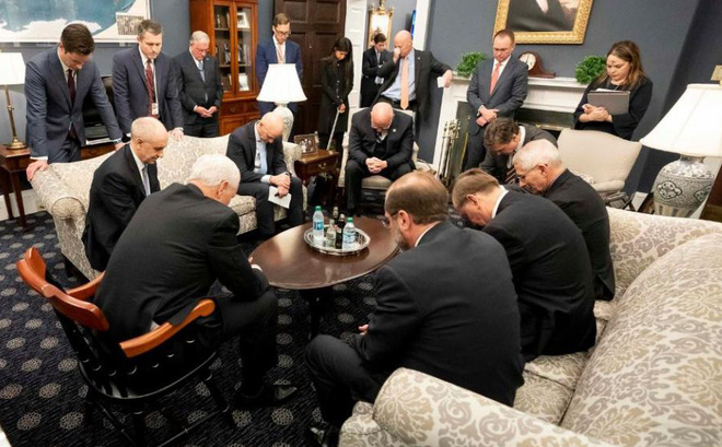 Cụ thể, theo SBS, hôm 2/3 vừa qua, Nhà Trắng đã đăng tải một số hình ảnh được chụp trong cuộc họp của ban chỉ đạo chống virus corona do Tổng thống Mỹ Donald Trump thành lập. Trong đó, tấm ảnh các thành viên của ban chỉ đạo cầu nguyện vào đầu cuộc họp đã nhanh chóng thu hút sự chú ý của dư luận và được chia sẻ nhiều trên các trang mạng xã hội.