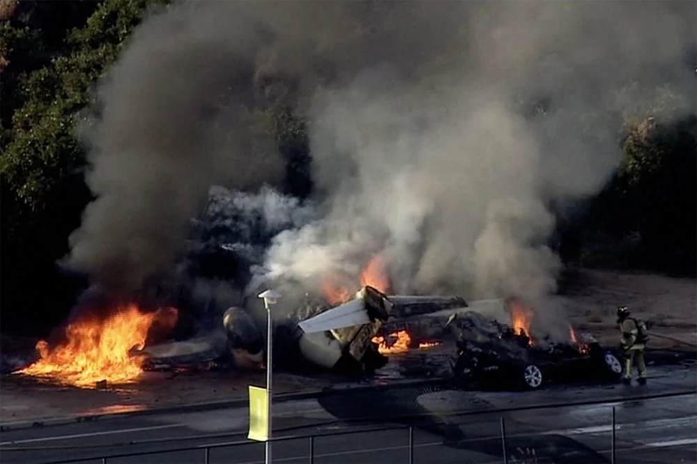 Một nhân chứng tên Joshua Golabi nói với CNN, rằng máy bay đã đâm xuyên qua hàng rào kim loại và "một vài bức tường bê tông". Là một phi công, Golabi cho biết anh không trực tiếp nhìn thấy vụ tai nạn nhưng đã nghe thấy tiếng của nó. Chiếc máy bay cùng chiếc xe đã bị phá huỷ hoàn toàn tại chỗ.