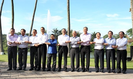 Các bộ trưởng và thứ trưởng Quốc phòng 10 nước ASEAN cùng Tổng thư ký ASEAN Lê Lương Minh chụp ảnh ngày 3/11 tại Malaysia. Ảnh: Reuters |