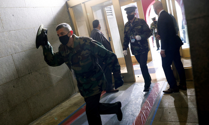 Các binh sĩ đang tham gia tổng duyệt cho lễ nhậm chức của Tổng thống đắc cử Joe Biden cũng được lệnh sơ tán vào bên trong các tòa nhà.