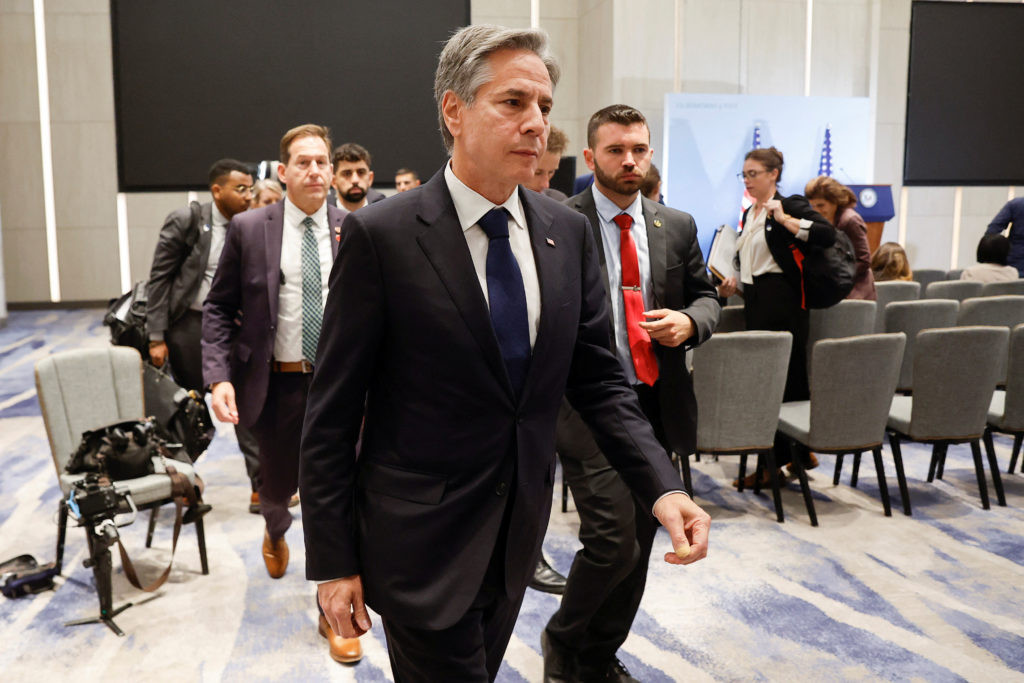 Trước đó 1 ngày, Ngoại trưởng Blinken đã gặp mặt Thủ tướng Israel Benjamin Netanyahu. Tại đây, ông Blinken kêu gọi Tel Aviv tạm thời ngừng bắn vì mục đích nhân đạo. Tuy vậy, ông Netanyahu nói sẽ không ngừng bắn cho tới khi Hamas trả tự do cho toàn bộ con tin.