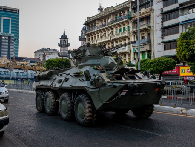 Truyền thông Myanamar hôm 14-2 đã phát cảnh quay trực tuyến cho thấy xe bọc thép đã xuất hiện trên đường phố tại các thành phố Yangon, Myitkyina và Sittwe. Đây được xem là lần đầu tiên quân đội Myanmar huy động lực lượng quy mô lớn kể từ khi xảy ra chính biến ngày 1-2.