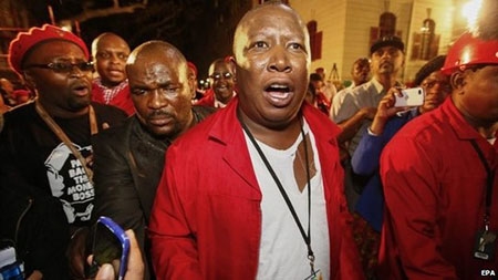 ...thì bị ông Julius Malema ngắt lời và chất vấn. Ảnh: EPA |