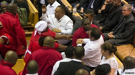Cảnh ẩu đả trong quốc hội Nam Phi hôm 12-2. Ảnh: Reuters |