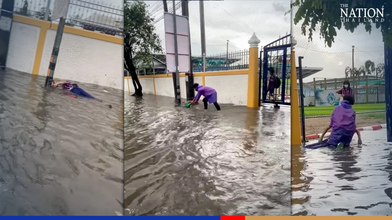 Lúc này Atthachai Argudom (13 tuổi) đi xe đạp điện qua con đường ngập nước ngay phía trước cổng trường thì bất ngờ phát hiện một bạn học sinh khác đang nằm bất động giữa đoạn đường ngập nước đến mắt cá chân.
