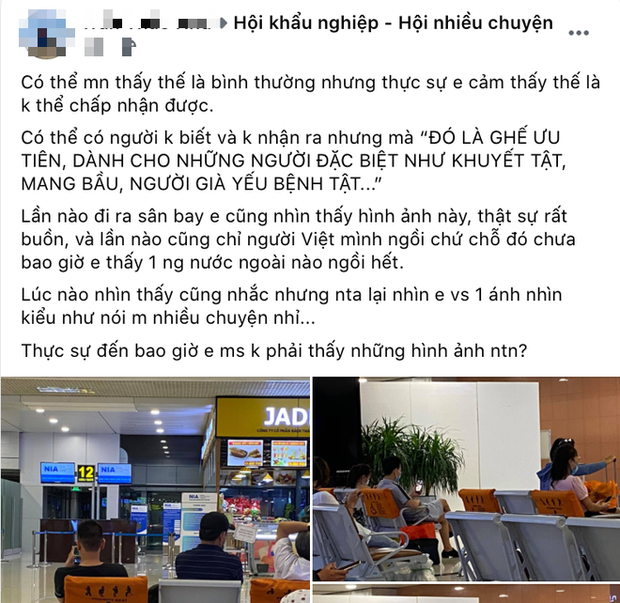 Chia sẻ trên vấp phải rất nhiều ý kiến trái chiều. Có người tỏ ra đồng tình, cho rằng hàng ghế ưu tiên chỉ nên dành cho người được ưu tiên, và bạn phải ngồi vào những chiếc ghế không có cảnh báo ấy như một phép lịch sự tối thiểu. Tuy nhiên, đa số lại phản đối và lên tiếng chỉ trích người đăng đã quá nhạy cảm, bởi sân bay khi đó còn nhiều ghế trống thì họ ngồi đâu cũng được. Vả lại, nếu có đối tượng cần được ưu tiên xuất hiện, hẳn những người ở đó sẽ sẵn sàng nhường lại ghế mà thôi.