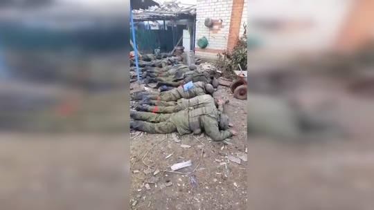Đoạn video cho thấy một nhóm binh sĩ mặc đồng phục Nga đầu hàng những người lính mặc đồng phục có phù hiệu Ukraine. Nhóm quân nhân Nga – nằm dưới đất – có thể là đã tử vong.