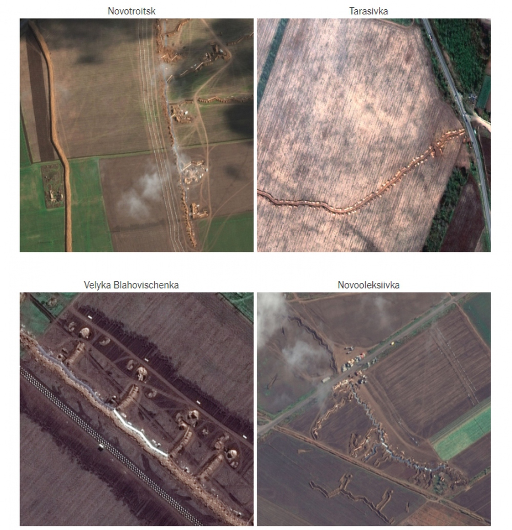 Dữ liệu radar vệ tinh về những thay đổi vật lý trên mặt đất, cùng với ảnh vệ tinh độ phân giải cao từ Planet Labs cho thấy nhiều chiến hào, phòng tuyến mới nằm dọc các đường cao tốc chính ngay sau tiền tuyến của Nga.