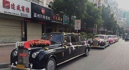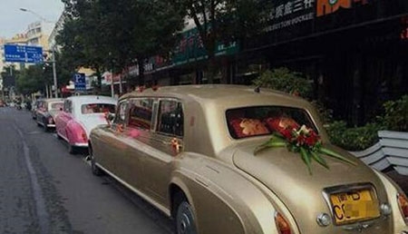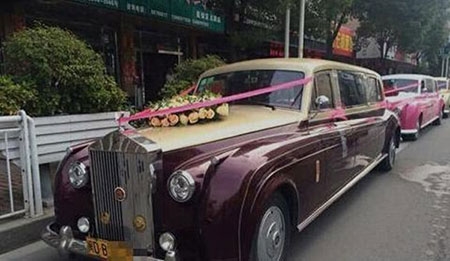 Đoàn rước dâu thoạt nhìn tưởng là "sang chảnh" gồm 4 chiếc xe màu đen, mận, hồng và vàng đồng với lối trang trí đơn giản đã thu hút sự chú ý rất lớn của dư luận vì quá bắt mắt. Nếu nhìn thoáng qua, ai cũng phải trầm trồ khi thấy những chiếc xe đắt tiền nối đuôi nhau đi trên phố. Ấy thế nhưng, khi đến gần, những người sành sỏi về xe cộ sẽ lập tức nhận ra đoàn xe trên chỉ là... Rolls-Royce nhái.