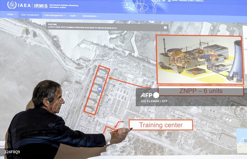 CNN dẫn lời Tổng giám đốc Cơ quan Năng lượng Nguyên tử Quốc tế (IAEA) Rafael Mariano Grossi phát biểu tại một cuộc họp báo ở Vienna, Áo hôm 4.3 cho biết, các lò phản ứng tại nhà máy điện hạt nhân Zaporizhzhia vẫn an toàn, không phát hiện rò rỉ phóng xạ.