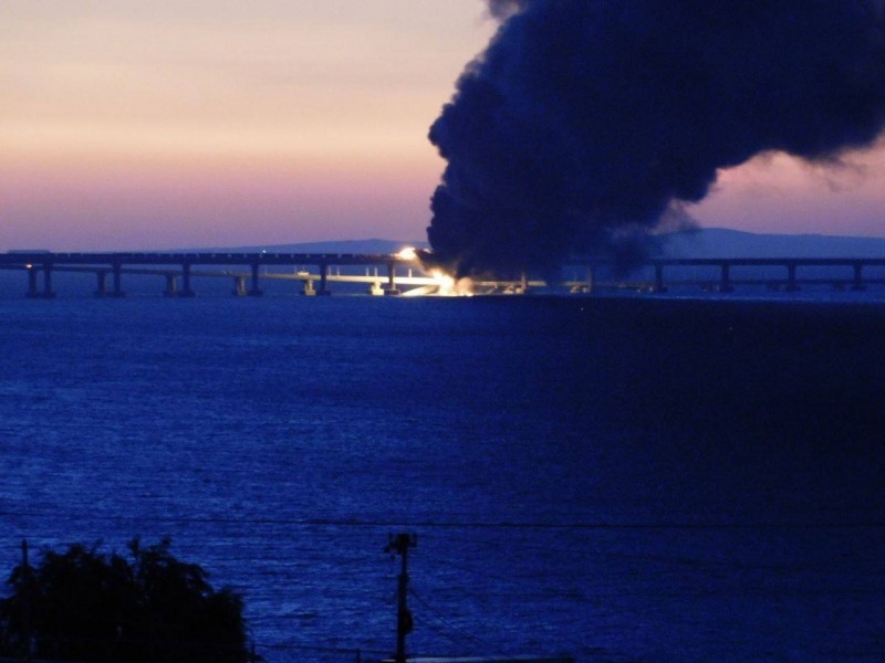 Reuters ngày 8/10 đưa tin, vụ tàu chở nhiên liệu bốc cháy trên cầu Kerch - nối bán đảo Crimea với Nga, đã khiến ít nhất hai nhịp cầu đường bộ bị sập. Các video được lan truyền trên mạng cho thấy một cột khói đen lớn như "nuốt chửng" đoàn tàu.