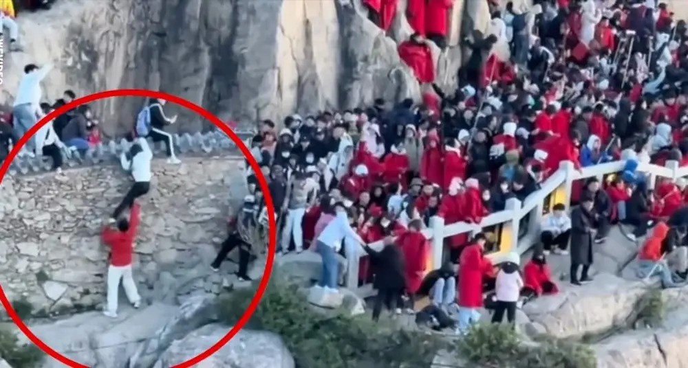 Vụ việc xảy ra vào ngày 4/5 tại núi Thái Sơn (tỉnh Sơn Đông). Theo đó, đoạn video ghi lại cảnh một cặp đôi đang đi du lịch đã liều mình leo vách đá để đi đường tắt khiến họ suýt mất mạng. Đoạn video này được lan truyền rộng rãi, thu hút hơn 8 triệu lượt xem trên mạng xã hội Trung Quốc.