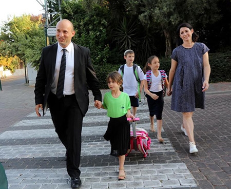 Hơn 2 triệu trẻ em và thiếu niên Israel hôm 1.9 vừa qua cũng chính thức bước vào năm học mới. Trong ảnh là Bộ trưởng Giáo dục Israel Naftali Bennett dắt cô con gái Avigail tới trường trong ngày đầu tiên cô bé bước vào lớp 1. Ông Bennett cũng là người khai mạc cho mùa khai giảng năm nay tại Israel. |