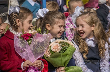 Sau 3 tháng nghỉ hè, hàng triệu trẻ em Nga hôm 1.9 cũng đã bắt đầu năm học mới. Ngày khai giảng ở Nga thường được gọi là Ngày Kiến thức và Kỹ năng. Những ngày này, học sinh Nga thường mang theo hoa để tặng cho giáo viên và nhận lại bóng bay. |