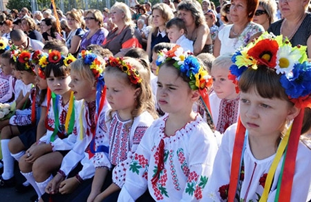 Ngày 1.9 cũng là ngày khai giảng truyền thống của học sinh Ukraine. Mặc cho tình hình đất nước còn nhiều bất ổn, các em nhỏ Ukraine vẫn xúng xính trong trang phục truyền thống, háo hức cầm hoa tới trường dự lễ khai giảng. |