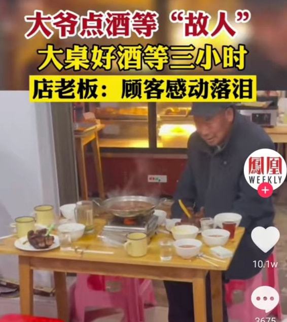 Chị Trần kể thêm: "Hôm đó, ông cụ đã chi tổng cộng 200 NDT (hơn 720.000 VND). Sau khi món lẩu và đồ ăn kèm được dọn lên đầy đủ, ông cụ cứ một mực ngồi yên ở đó, ngồi đến hơn 3 giờ đồng hồ. Trong lúc ngồi một mình, ông chỉ uống 2 ly rượu và không hề lấy đũa gắp một miếng thức ăn nào cả. Thỉnh thoảng, tôi còn nghe ông lẩm bẩm vài từ nữa".