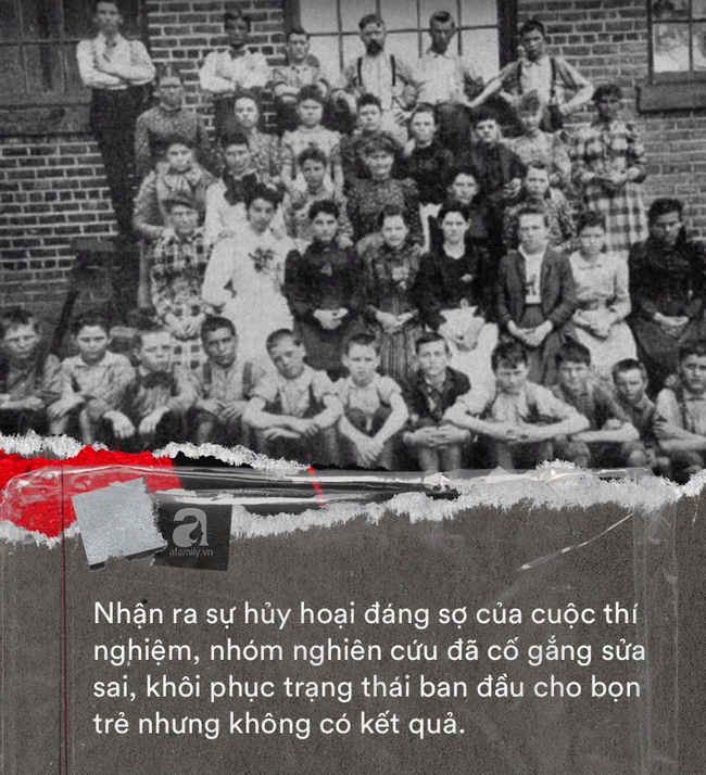Nhận ra sự hủy hoại đáng sợ của cuộc thí nghiệm, nhóm nghiên cứu đã cố gắng sửa sai, khôi phục trạng thái ban đầu cho bọn trẻ nhưng không có kết quả. Dường như tác động từ thí nghiệm đã ăn sâu vào nhóm trẻ mồ côi bị "gắn mác" nói lắp và các em phải vật lộn với hậu quả của cuộc thử nghiệm phi đạo đức đó trong suốt phần đời còn lại.