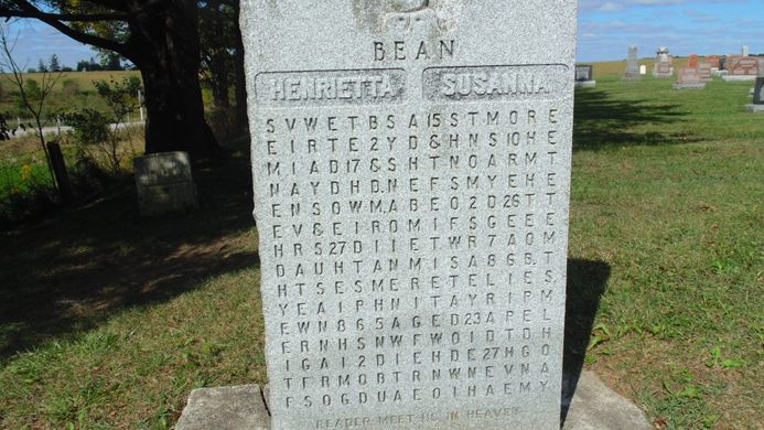 Ngôi mộ chôn cất 2 người vợ của bác sĩ Samuel Bean tại nghĩa trang Rushes ở Ontario, Canada được nhiều người biết đến. Đặc biệt, các chuyên gia và các nhà mật mã hứng thú với ngôi mộ có mật mã này vì muốn giải mã nội dung trên bia mộ.