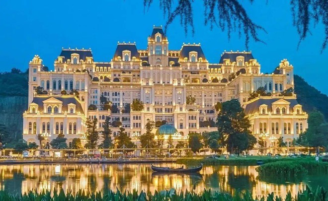 Tòa nhà có tên gọi chính thức là Trung tâm nghệ thuật Hoa Quốc Viên, xây 12 tầng và được phủ sơn trắng toàn bộ với lối kiến trúc châu Âu cầu kỳ. Giá trị của tòa biệt phủ như lâu đài này lên tới 2,7 tỷ NDT (gần 9.500 tỷ đồng). Theo truyền thông Trung Quốc, ngôi nhà có tổng cộng khoảng 800 phòng lớn nhỏ.