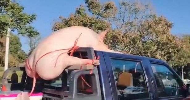 Theo báo chí Trung Quốc, vụ việc xảy ra cách đây không lâu tại huyện Phụ Dương, tỉnh An Huy (Trung Quốc). Theo hình ảnh mà một người đi đường quay lại bằng điện thoại, một con lợn đã làm thịt được buộc cẩn thận bằng dây màu đỏ vào thanh gỗ đặt ngang thùng xe.