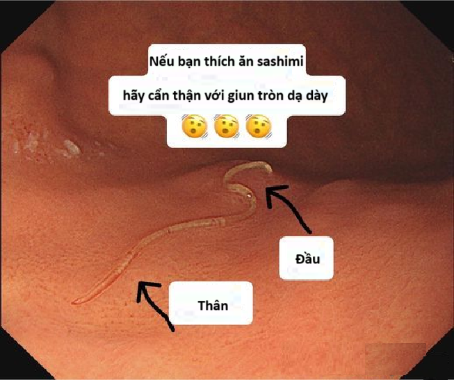 "Trong trường hợp khủng hoảng giun dạ dày, tốt hơn là nên ăn ít sashimi hơn!", Lin Xianghong cảnh báo những người thường xuyên ăn sashimi nên cẩn thận với giun tròn dạ dày, một loại ký sinh trùng có trứng được tìm thấy trong các loài giáp xác ở đại dương chẳng hạn như tôm, cua... khi các loài giáp xác bị nhiễm bệnh được cá ăn vào, chúng sẽ phát triển thành ấu trùng trong cơ thể cá. Con người có thể bị nhiễm bệnh khi ăn sashimi. Những loại phổ biến nhất bao gồm cá hồi và cá thu, cá thu đao, cá ngừ, cá mòi và mực...