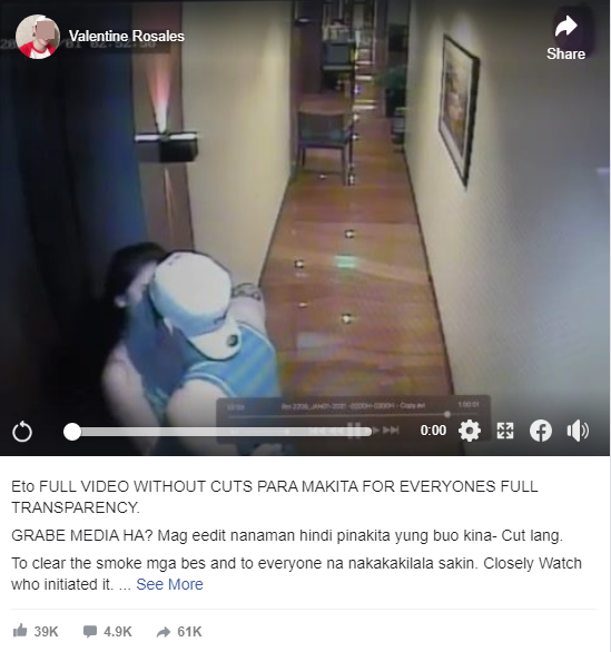 Trước sức ép của dư luận, Valentine Rosales nhanh chóng lên tiếng phản hồi. Anh thừa nhận người đàn ông hôn Decera trong clip chính là mình. Tuy nhiên sự thật không như những gì nhiều người suy đoán. Valentine Rosales đã đăng tải trọn vẹn đoạn clip dài 14 giây để minh oan cho bản thân. Đoạn cuối bị cắt trong clip cho thấy cả hai chỉ hôn nhau trong vài giây rồi Decera ngả người về phía Valentine Rosales trong tình trạng không đứng vững. Người đàn ông nở nụ cười vui vẻ, giữ Decera khỏi bị ngã trong khi tay vẫn ấn chuông cửa.
