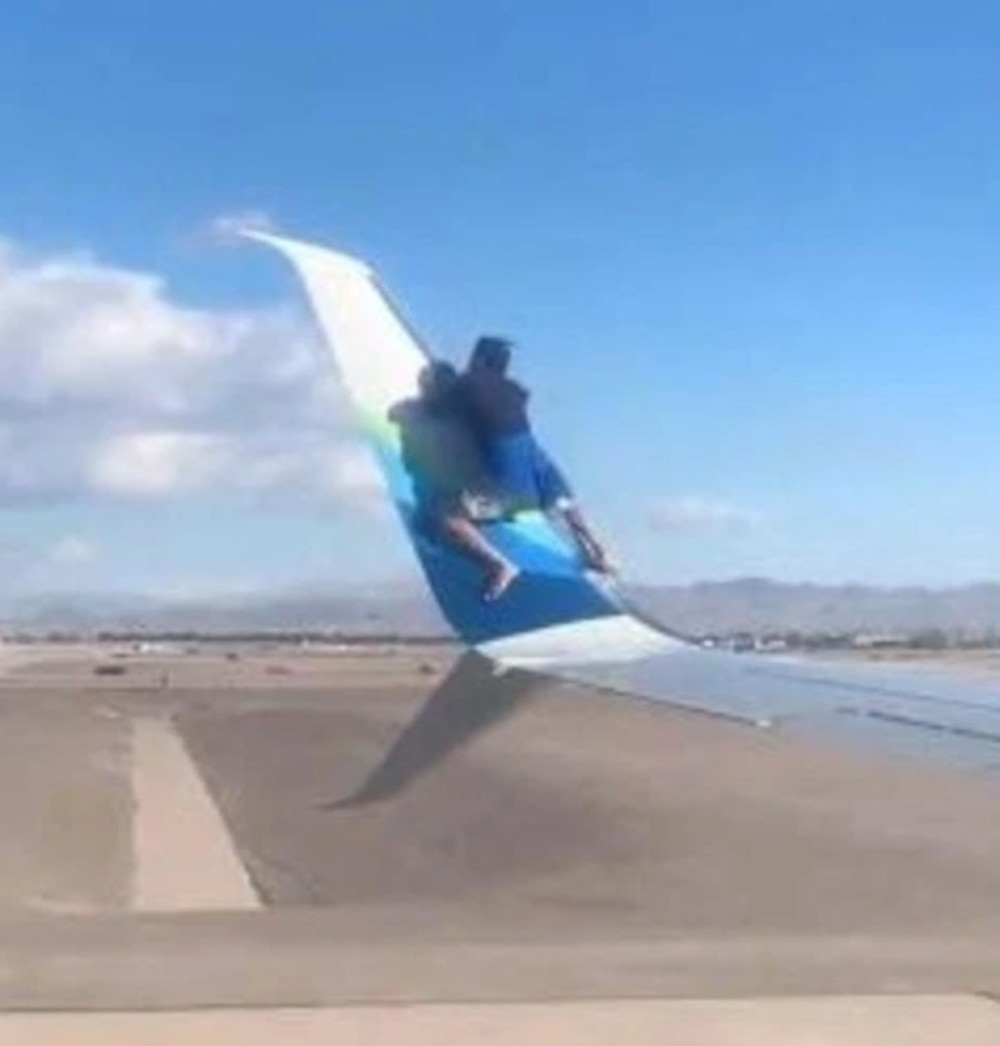 Đúng lúc này, anh ta đạp rơi giày và trườn tới lui, cố leo lên cánh máy bay. Tuy nhiên, trong lúc bám víu vào phần đầu cánh, anh ta trượt chân ngã thẳng xuống đường băng. Nhân cơ hội đó, các sĩ quan cảnh sát ở bên cạnh và phía sau nhanh tay khống chế người đàn ông trong trạng thái quá khích.