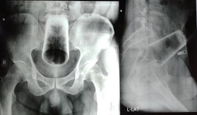 Sau khi thăm khám, các bác sĩ cho biết, tâm trạng và hành vi của người đàn ông 47 tuổi đã ổn định, người này cũng được xác định không có tiểu sử bệnh tâm thần trước đây. Ảnh chụp X-quang vùng hậu môn nạn nhân cho thấy một chiếc cốc thủy tinh úp ngược được nhét sâu vào trong trực tràng và đại tràng của nạn nhân.