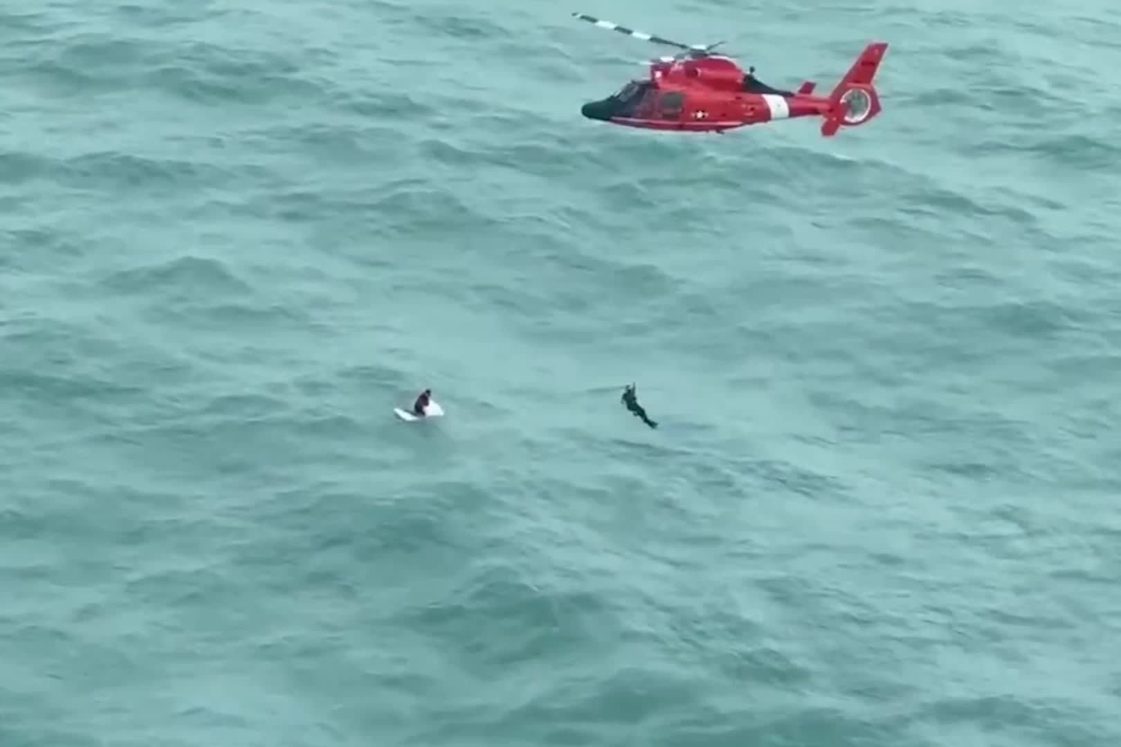Tuần duyên Mỹ đăng video cho thấy một thành viên của lực lượng rời khỏi trực thăng để giải cứu người đàn ông. Sự việc diễn ra cách bờ biển Longboat Key, bang Florida khoảng 48km, theo New York Times.
