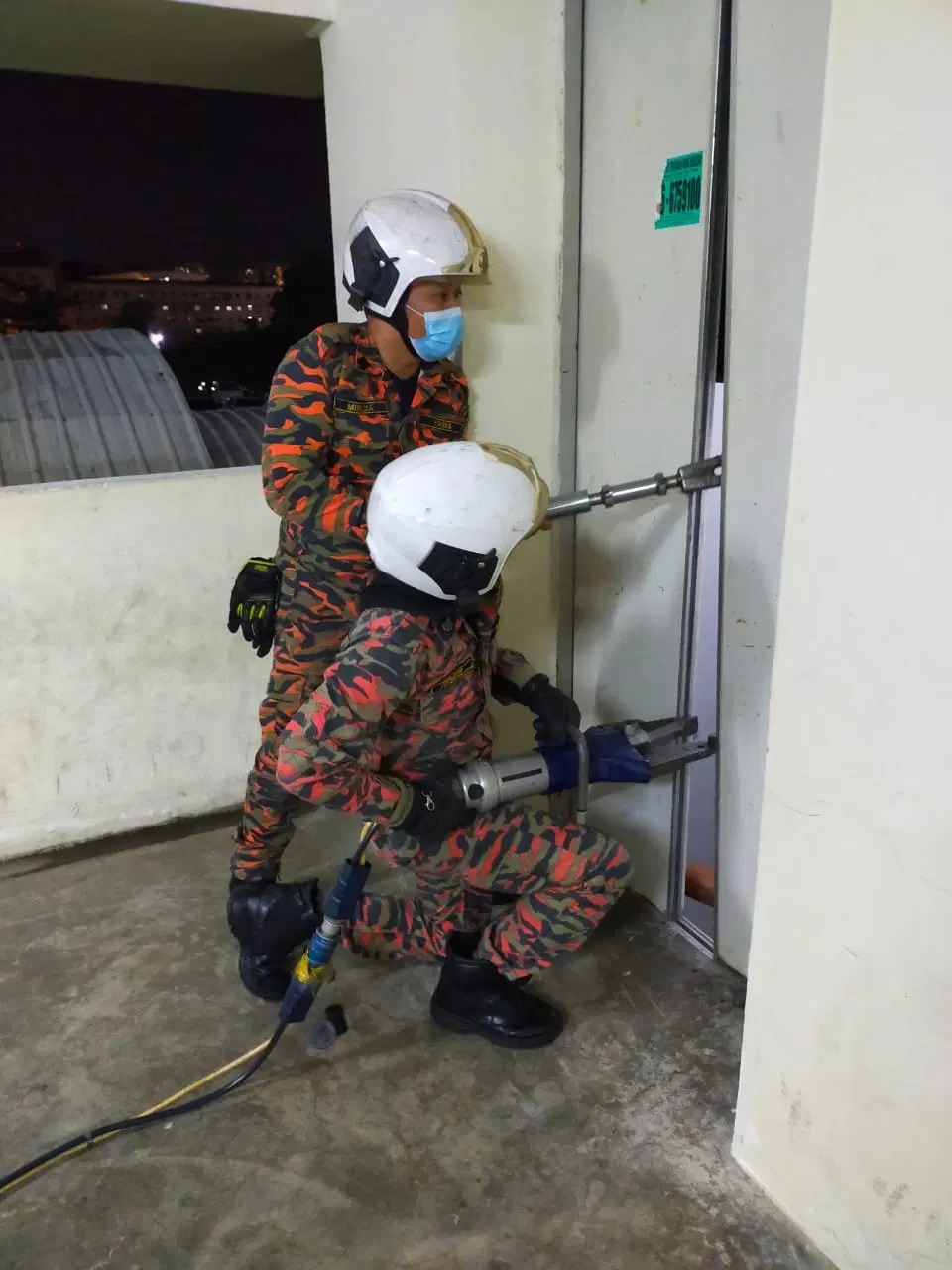 Ngay lập tức lực lượng cứu hộ được huy động để giải cứu nạn nhân. Các bức ảnh được chia sẻ trên Facebook cho thấy các nhân viên đã phải dùng phương tiện đặc biệt để cạy cửa thang máy.