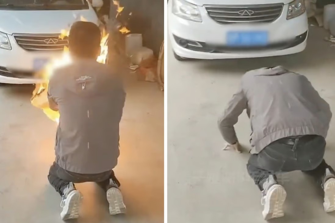 Trong đoạn video do người vợ họ Vương (Wang) quay lại cho thấy, người chồng của cô đang quỳ gối trước một chiếc xe màu trắng. Sau đó, anh ta đốt một ngọn đuốc bằng giấy, chắp tay cầu nguyện và cúi đầu trước chiếc xe.
