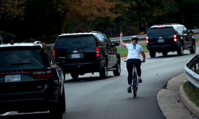 Bà Juli Briskman trở nên nổi tiếng và sau đó bị đuổi việc vì giơ ngón tay giữa về phía đoàn xe TT Trump hồi năm 2017. Theo Guardian, bà Briskman sử dụng chính bức ảnh nổi tiếng của chính mình để làm tư liệu chính cho chiến dịch tranh cử của mình.