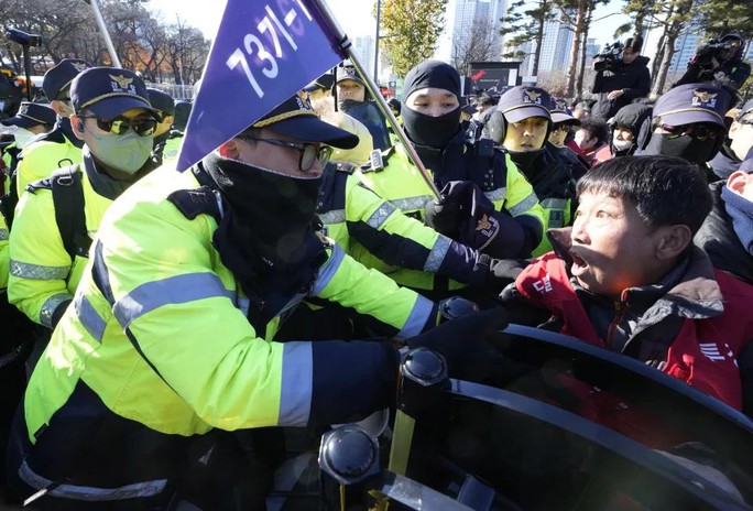 Ba người biểu tình, trong đó có ông Ju Yeong-bong, đã bị cảnh sát bắt giữ trong tình trạng hỗn loạn.