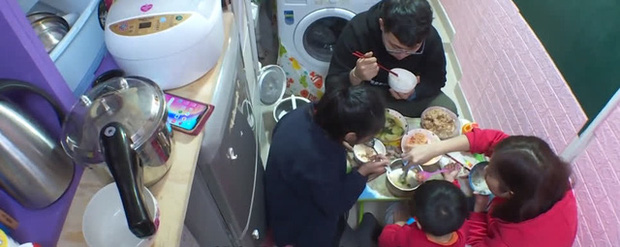 Khi ăn cơm, mỗi thành viên sẽ ngồi khúm núm ở một góc bàn, trên đầu họ treo đầy là quần áo. Vì nhà nhỏ, chỉ cần xoay người là va phải đồ vật, nhưng họ vẫn kiên quyết ngồi ăn cùng nhau. Đối với họ, bữa cơm quây quần là điều duy nhất khiến họ cảm thấy nơi đây vẫn là nhà. Ăn tối cùng nhau đã trở thành thói quen trong cuộc sống khó khăn của họ.