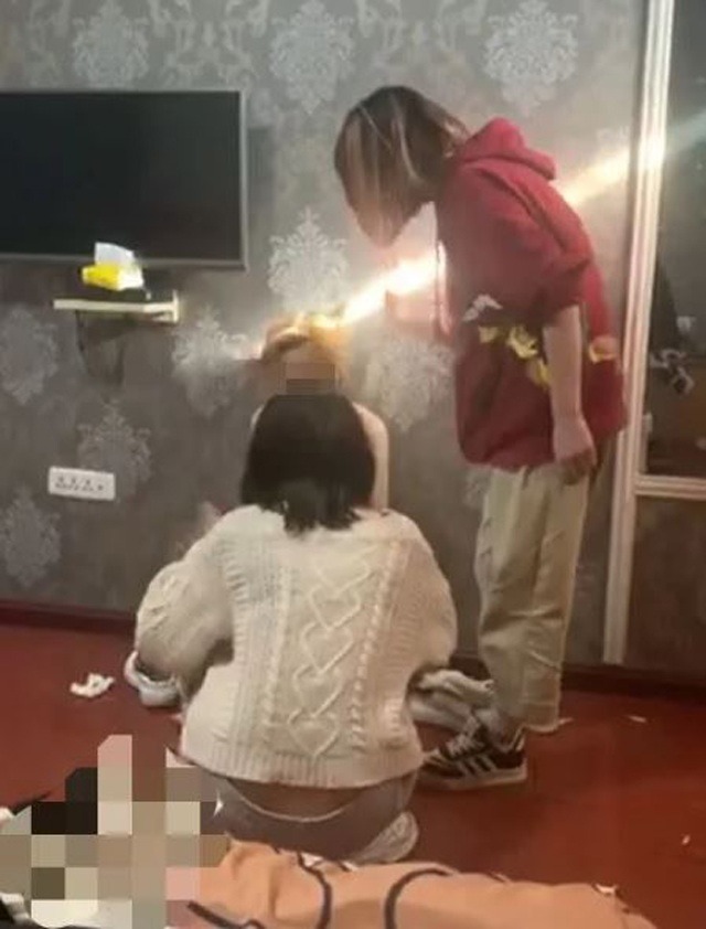 Đứng trước mặt người phụ nữ này là 2 người phụ nữ khác đang tỏ ra hết sức nóng giận và phẫn nộ, liên tục chửi rủa, thậm chí còn ra tay bạo hành người phụ nữ đang quỳ dưới đất. Trong quá trình đó, nạn nhân không dám chống trả một lần nào, chỉ biết cúi đầu khóc nức nở và chịu đựng cơn đau. Tuy nhiên, những người xung quanh vẫn không chịu tha cho nạn nhân, nhiều lần đá và đánh vào người, túm tóc và tát vào mặt cô.