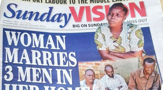 Cô Ann Grace Aguti, 36 tuổi, ở tiểu khu Mukura, quận Ngora, Uganda, thu hút truyền thông nước này khi tuyên bố sống như vợ chồng với 3 người đàn ông.