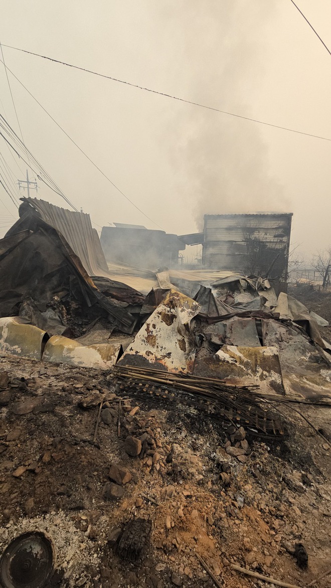 Trong số những người bị ảnh hưởng nặng nề có gia đình chị Đào Thị Thái, 36 tuổi, một người Việt đang sinh sống tại Cheongsong, tỉnh Gyeongsang Bắc - vùng đất nổi tiếng về nông nghiệp và du lịch tại Hàn Quốc nhưng giờ đây, tất cả chỉ còn là đống hoang tàn đổ nát sau trận hoả hoạn kinh hoàng được đánh giá nặng nề nhất tại quốc gia này.