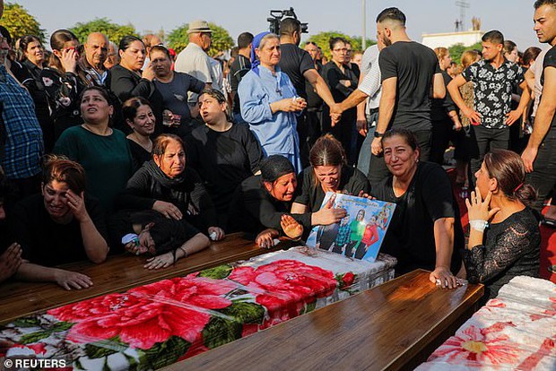 Tại nghĩa trang ở thành phố Qaraqosh, khung cảnh tiễn biệt người thân diễn ra khiến không ít người nghẹn lòng. Ngày hôm trước, những người trong ảnh đã tập trung tại một phòng tiệc sang trọng để dự một đám cưới. Tuy nhiên, họ chưa bao giờ dám nghĩ rằng thảm kịch kinh hoàng sẽ xảy ra với mình.