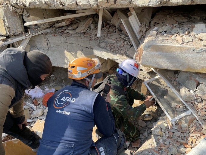 Trong 4 ngày thực hiện nhiệm vụ tại Hatay, đoàn cứu hộ của Quân đội nhân dân Việt Nam đã nỗ lực cùng các nhóm điều phối công việc cụ thể, chính xác, nhịp nhàng.