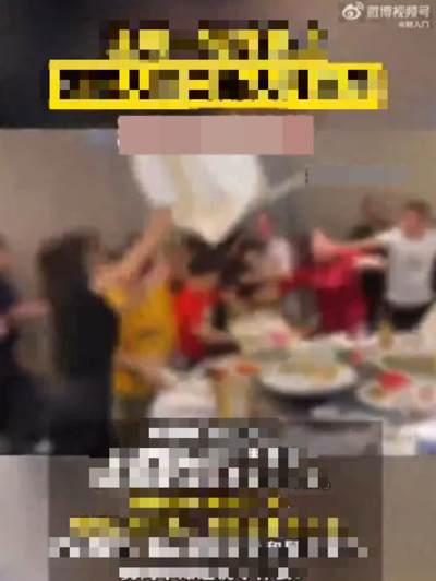 Căng thẳng nhanh chóng vượt khỏi tầm kiểm soát, dẫn đến một trận ẩu đả hỗn loạn giữa người thân hai bên. Khách mời ném bát đũa, rau củ, thịt cá và đồ ăn nóng vào nhau, thậm chí dùng ghế để tấn công. Đồ đạc trong sảnh tiệc bị đổ vỡ, đồ trang trí bị phá hoại, và khách mời hoảng loạn bỏ chạy.