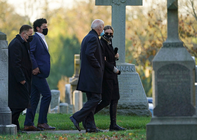 Trước đó, Biden cùng vợ và các cháu tới nhà thờ St. Joseph tại hạt New Castle, bang Delaware, thăm mộ người vợ đầu tiên và con trai Beau, cựu tổng chưởng lý Delaware qua đời năm 2015 vì ung thư não.