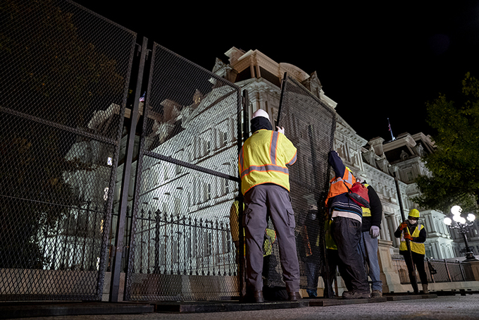 Đội ngũ công nhân đã làm việc cật lực để dựng lớp hàng rào thép cao khoảng 2,5 m bao quanh 21 ha đất xung quanh Nhà Trắng, ngay trong đêm trước ngày bầu cử. Công viên Lafayette gần đó cũng được rào lại sau những cuộc biểu tình chống phân biệt chủng tộc hồi mùa hè.
